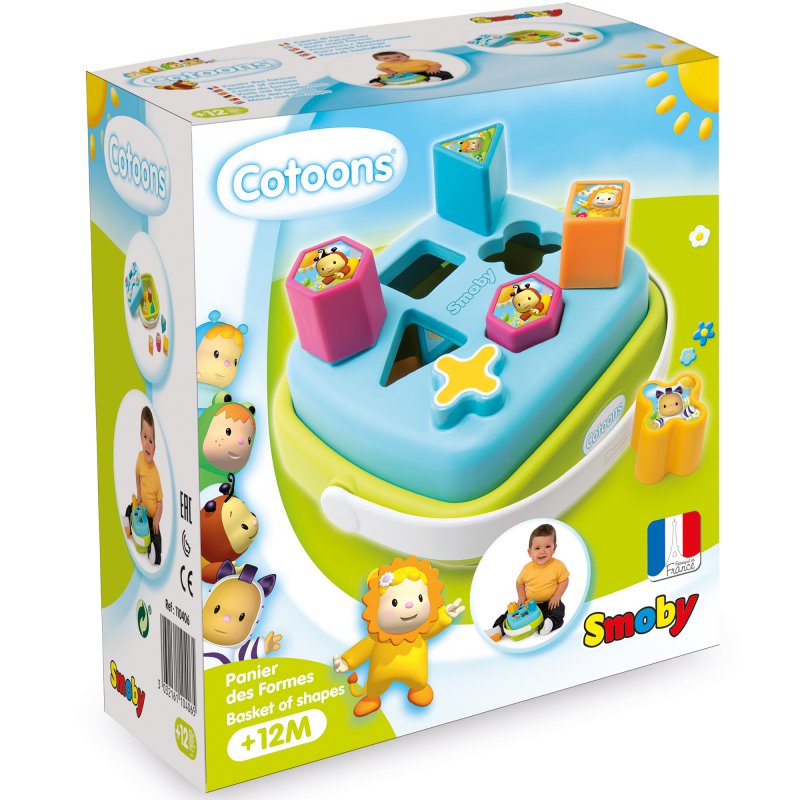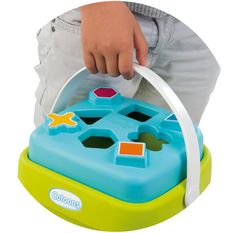 Rewelacyjny sorter z koszyczek renomowanej francuskiej marki Smoby Cotoons to świetny pomysł na zabawke dla Twojego Dziecka!!! Zabawkę cechuje rewelacyjna jakość wykonania i ciekawe wzornictwo oraz bezpieczeństwo zabawy. Malec podczas zabawy uczy się rozróżniać kształty i kolory. Produkt rozwija zdolności manualne i wyobraźnię dziecka.Ten barwny koszyk posiada w zestawie pięć kolorowych klocków, które należy dopasować do odpowiednich otworów.