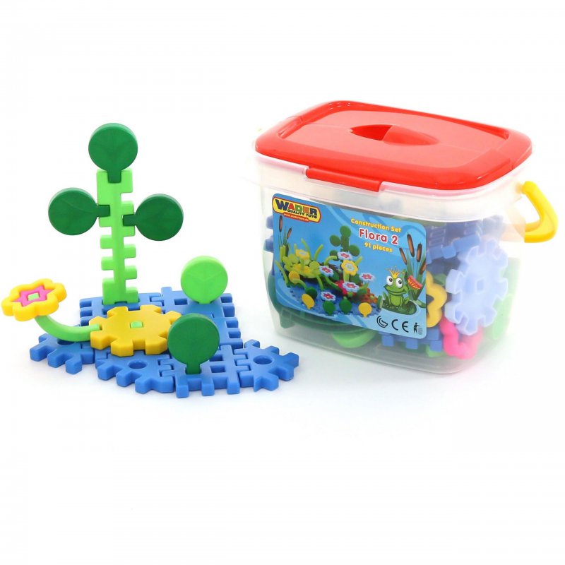Zestawy składają się z klocków,które można łączyć ze sobą w dowolny sposób. Dzięki temu dziecko może rozwijać swoją kreatywność. Zestaw Flora zawiera 91 elementów z motywem flory. Klocki są w żywych kolorach,dzięki czemu przykuwają uwagę dziecka. Ze względu na swoje gabaryty są idealnie dostosowane do rączek najmłodszych dzieci a różnorodność form umożliwia tworzenie z klocków rozmaitych budowli, pojazdów i postaci rozwijając w dziecku wyobraźnię dziecka i jego zdolności manualne.