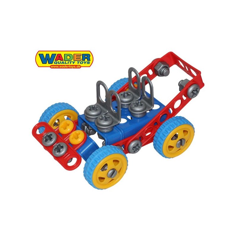 W zestawie znajdują się klucze,które są niezbędne małemu inżynierowi do konstruowania niezwykłych pojazdów. Do tego wiele elementów konstrukcyjnych,nakrętki,koła i opony. Za pomocą elementów można zbudować samochód i wiele innych konstrukcji zależnych od wyobraźni dziecka. Realistyczne wyposażenie na pewno zapewni długą wspaniałą zabawę.