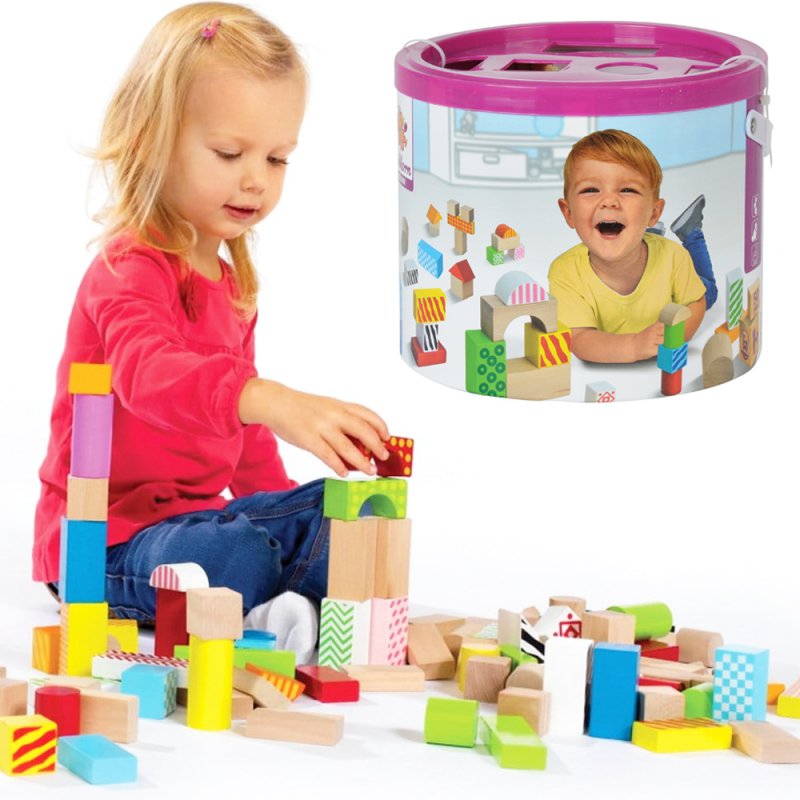 Zestaw 100 sztuk klasycznych, kolorowych, drewnianych klocków w wiaderku od firmy Viga, cenionego producenta drewnianych zabawek dla dzieci, przeznaczonych dla dzieci powyżej 24 miesiąca życia. Klocki wykonane zostały z bezpiecznych ekologicznych materiałów pozwolą na kreatywną, ciekawą zabawę w domu czy przedszkolu.