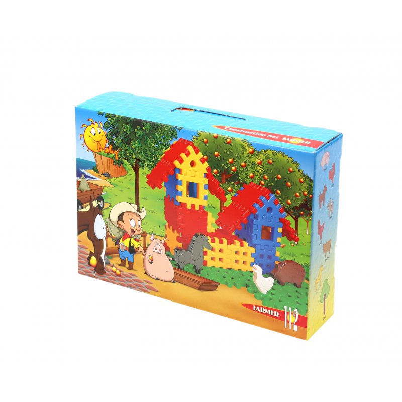 Klocki konstrukcyjne Farmer 112 elementów. Zbuduj własną zagrodę ze zwierzętami.