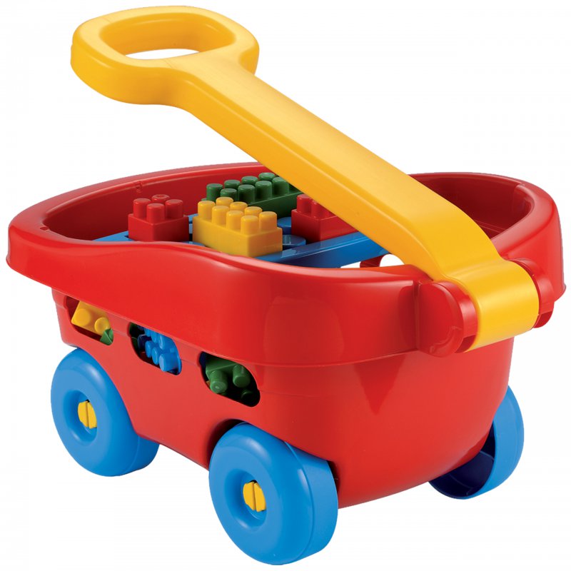 Wózek wykonany z dobrej jakości tworzywa o wysokiej odporności, natomiast gabaryty klocków wykluczają możliwość połknięcia. Godna uwagi jest jego funkcjonalność, służy do wożenia klocków ale też doskonale sprawdza się jako pomoc przy stawianiu pierwszych kroków przez dziecko. Przyciągające uwagę, żywe kolory gwarantują, że zabawka będzie rozwijać i kształtować wyobraźnie i zdolności manualne dziecka zapewnią długą, wspaniałą zabawę.