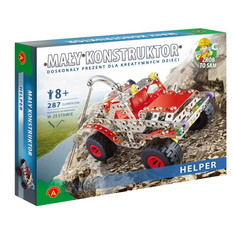 "Mały Konstruktor - Helper" to zabawka do samodzielnego montażu. Każdy model składa się z różnej wielkości i kształtów elementów metalowych, a także jest wzbogacony kolorowymi elementami z tworzyw sztucznych. To idealna zabawka dla przyszłych inżynierów i nie tylko.