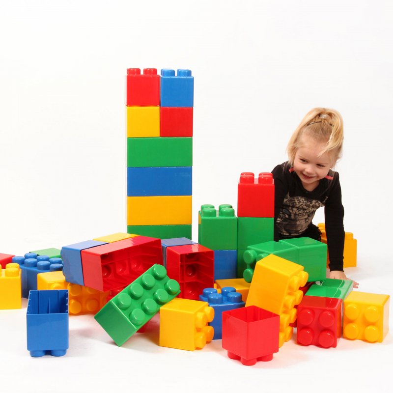 Klocki, dzięki swoim rozmiarom zapewniają bezpieczną zabawę dzieciom już od pierwszego roku życia.
