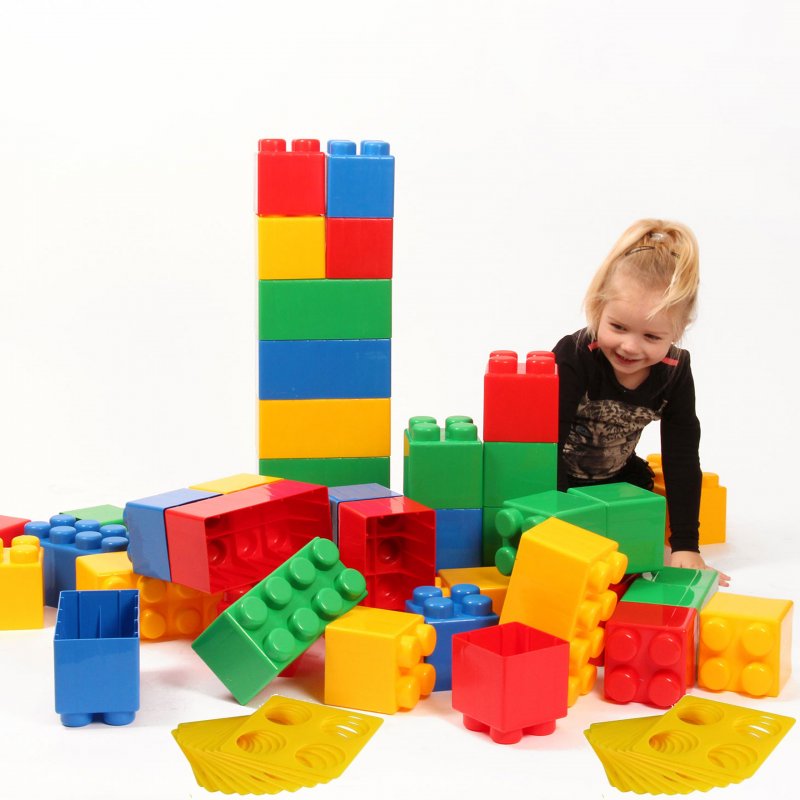 Klocki, dzięki swoim rozmiarom zapewniają bezpieczną zabawę dzieciom już od pierwszego roku życia.