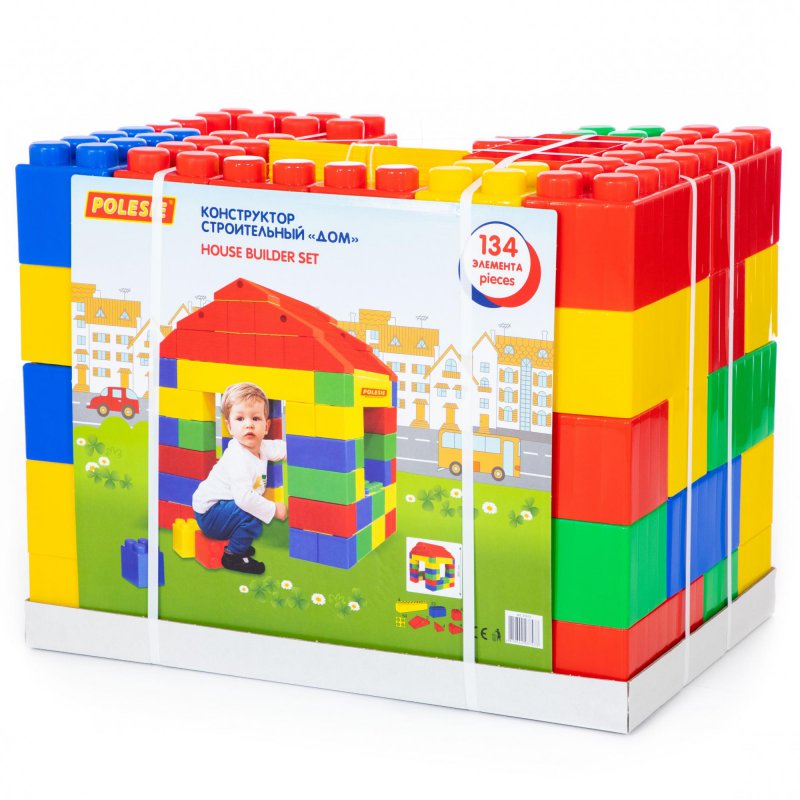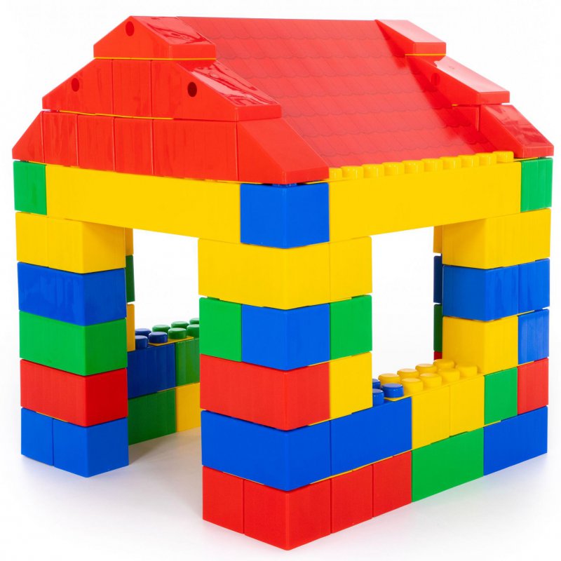 Zestaw zawiera 134 elementy, w tym klocki, dach i 54 łaczniki do klocków.
