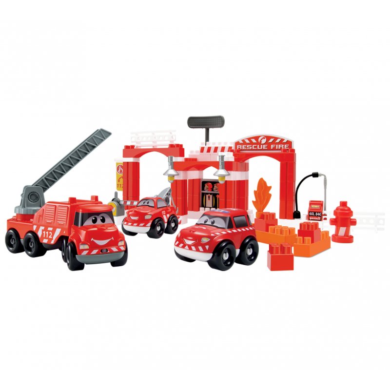 W zestawie znajdują się wszystkie elementy niezbędne do zbudowania bazy strażackiej. W zestawie można znaleźć akcesoria do urozmaicenia zabawy takie jak: 3 pojazdy straży pożarnej, szlaban czy hydrant.