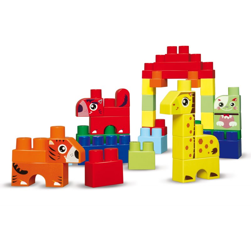 Klocki znajdują się w praktycznym pudełku, które pomoże utrzymać porządek. Przykrywka pudełka może posłużyć jako podstawa do układania klocków. Zestaw pozwala na skonstruowanie figurek zwierzątek, roślin i innych elementów.