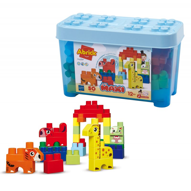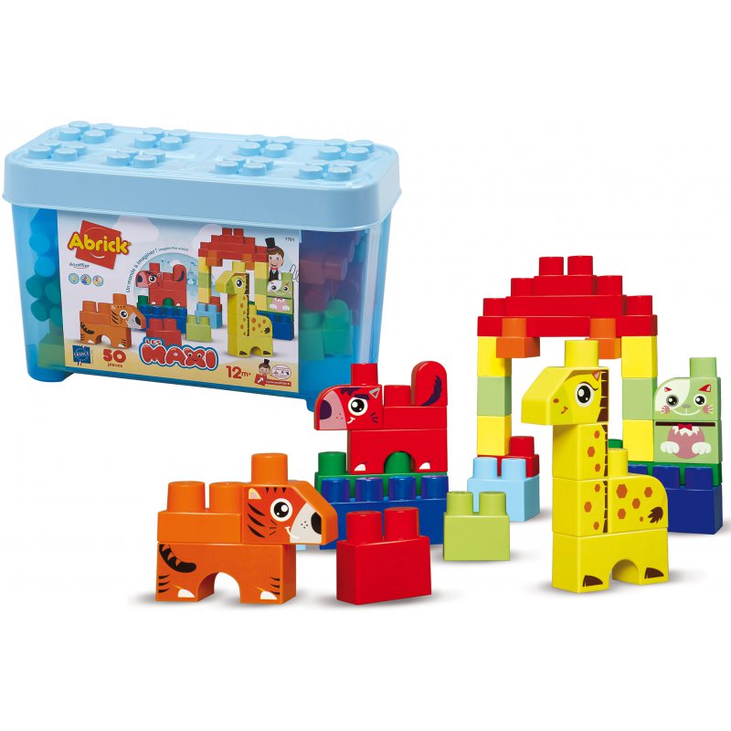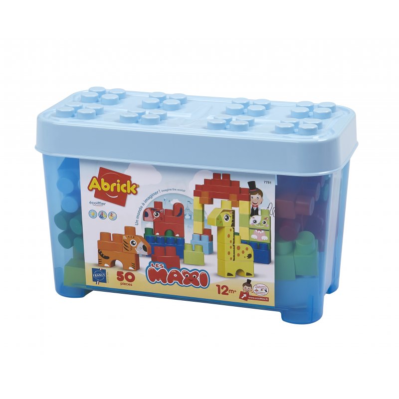 Ecoiffier Zestaw klocków Abrick w pojemniku Zwierzęta 50 elementów Niebieskie