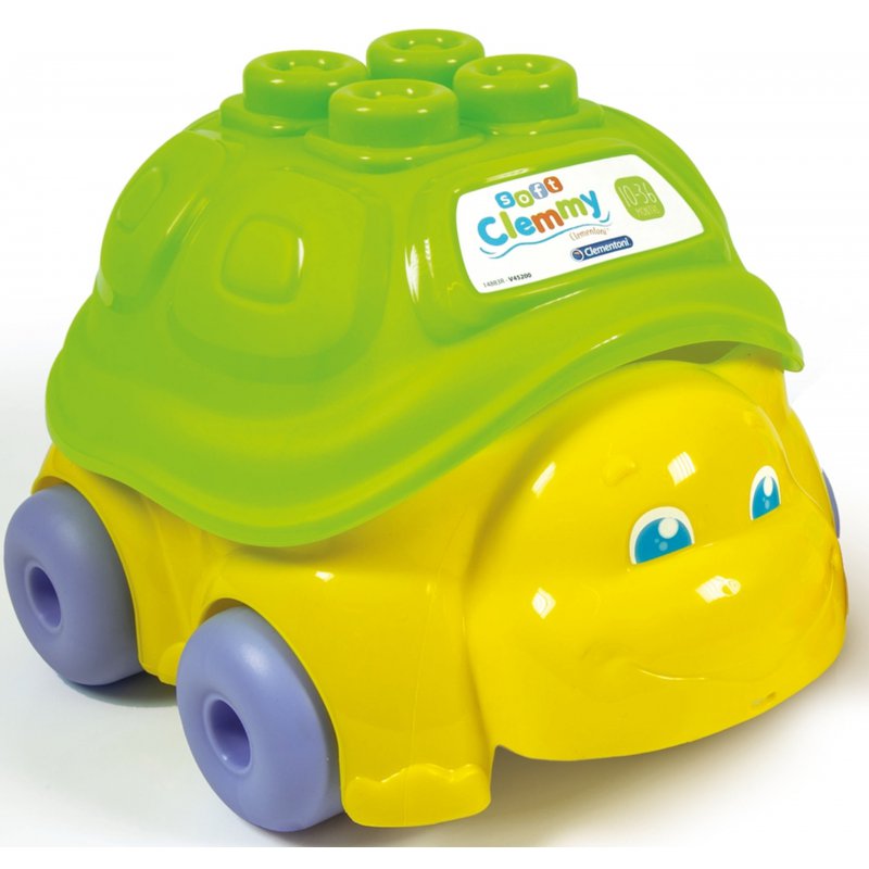 Miękkie klocki stworzone przez renomowanego producenta zabawek dla dzieci, włoską firmę Clementoni. Klocki znajdują się w praktycznym koszyku w kształcie żółwia.