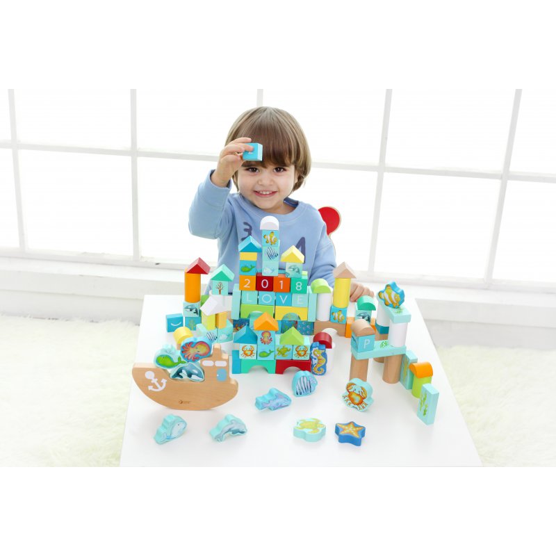 CLASSIC WORLD Drewniane Klocki Ocean 100 Elementów