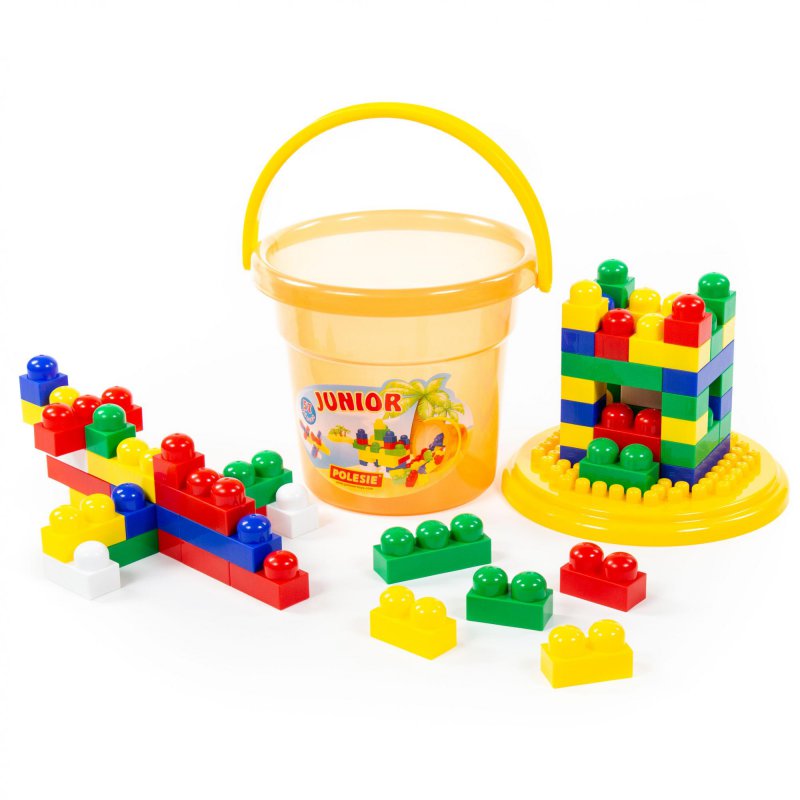 Rewelacyjny zestaw klocków od firmy Wader Quality Toys idealnie sprawdzi się w przedszkolu i podczas zabaw w domu. Kolorowe klocki znajdują się w praktycznym pudełku - wiaderku z przykrywką, które pomoże utrzymać porządek w pokoju każdego malucha. Dzieci będą mogły tworzyć z klocków różne konstrukcje i budowle rozwijając przy tym swoje zdolności manualne i wyobraźnię. Kształt pojedynczych klocków jest bezpieczny i wygodny już dla rączek najmłodszych konstruktorów. Dodatkowo przykrywka wiaderka może posłużyć jako podstawa nowej budowli.