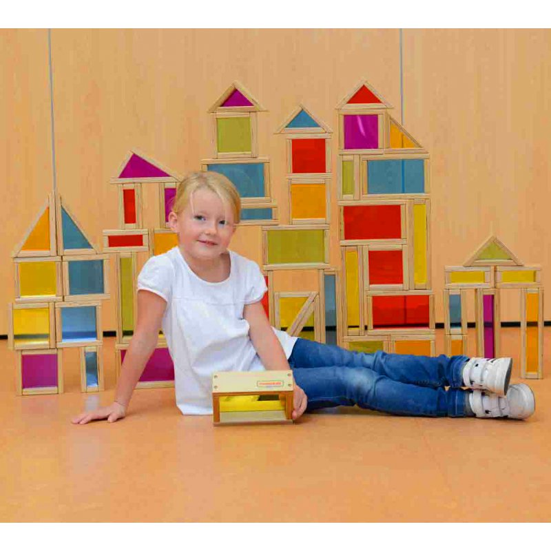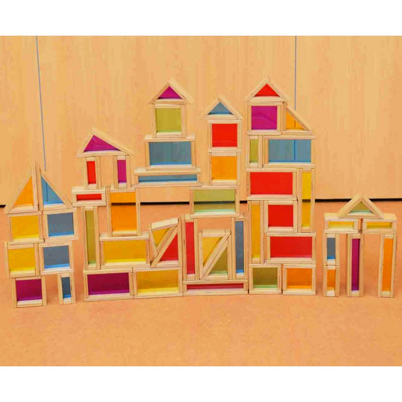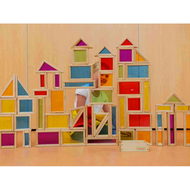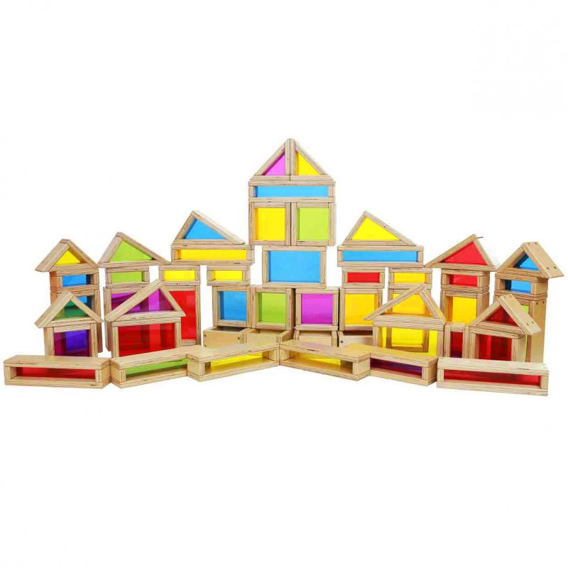MASTERKIDZ Drewniane Klocki z akrylowym kolorowym wypełnienim 51 Elementów