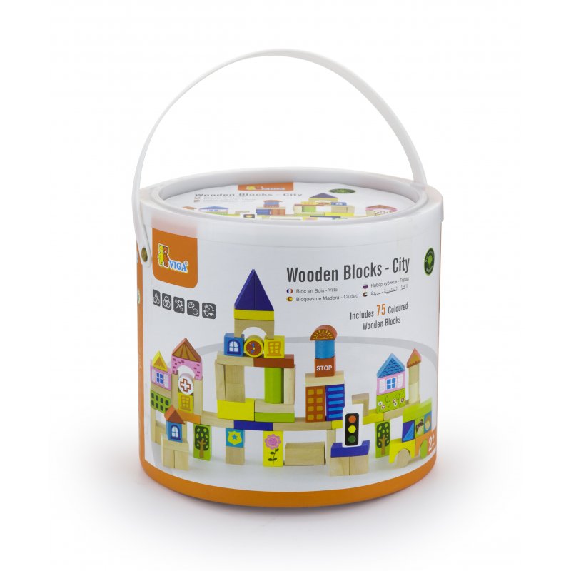 Drewniane klocki Viga Toys Miasto 75 elementów cenionego producenta zabawek Viga Toys dla dzieci od 2 roku życia idealne do przedszkola jak i do domu.