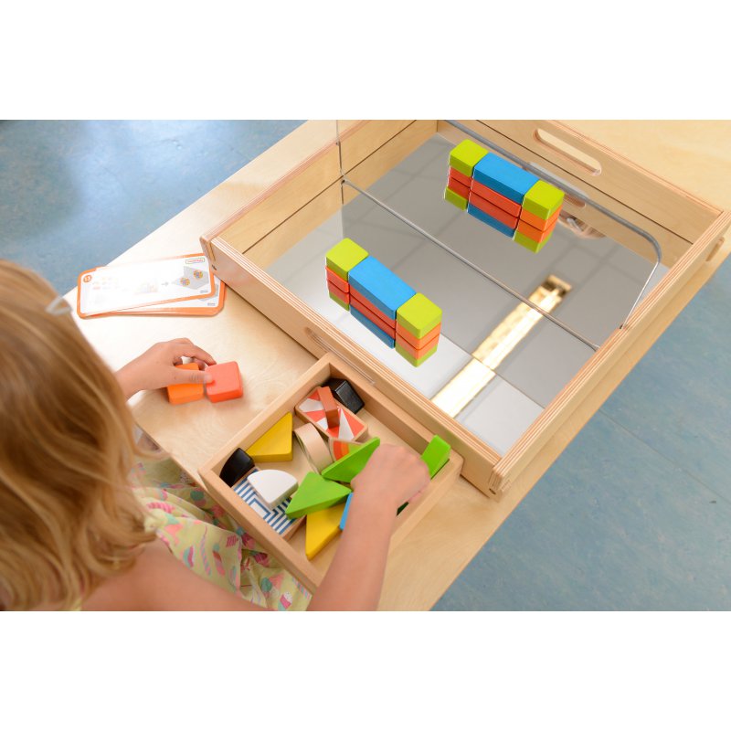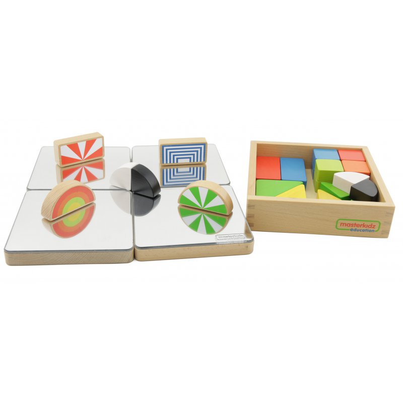 Klocki są zalecanym dodatkiem do zabawek lustrzanych marki Masterkidz. Dzięki nim, dziecko może nauczyć się w praktyce zasad odbijania obrazu przez lustra, oraz symetrii. Maluch może układać różne budowle i konstrukcje przed lustrami ustawionymi na przeróżne sposoby, dzięki czemu każde odbicie będzie niepowtarzalne.