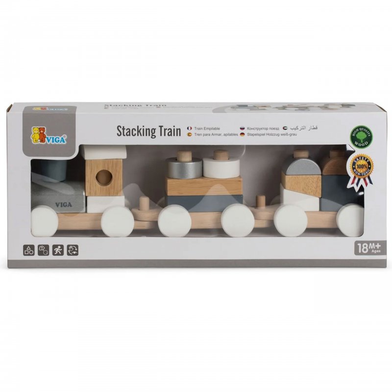 Drewniana figurka pociąg z składa się z 4 elementów. Zaprojektowany została przez cenionego producenta zabawek drewnianych firmę Viga Toys dla dzieci od 3 roku życia, doskonała do przedszkola jak i do domu.