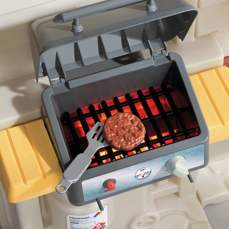 Little Tikes Kuchnia z grillem to wspaniała zabawka dla małego kucharza wyprodukowana przez amerykańską firmę Little Tikes. Pozwala ona zarówno na zabawę w gotowanie w domu, jak też na grillowanie w ogródku. Czy czujesz już apetyczny zapach pysznych potraw z grilla? Realistycznie odtworzona część zewnętrzną to kamienne patio ze stylowym baldachimem z tkaniny, kwiatami, stolikiem i ławeczką dla gości. Grill wydaje charakterystyczne dźwięki i tworzy realistyczne `płomienie`.