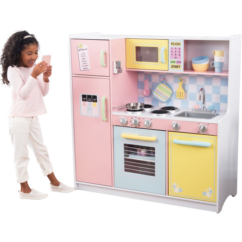 Kuchnia drewniana Pastelowa zaprojektowana przez cenionego producenta zabawek,amerykańską firmę KidKraft. Duża kuchnia dla małych miłośników gotowania to idealne wyposażenie pokoju dziecięcego lub kącika tematycznego w przedszkolu.