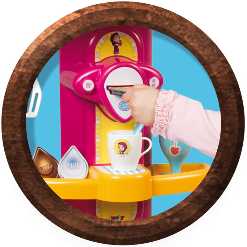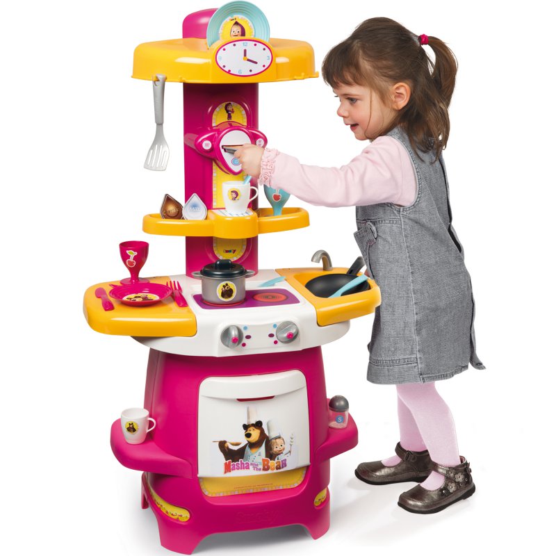 Kuchnia dla dzieci posiada ciekawy i nowoczesny design, a także ładną i żywą kolorystykę, nawiązująca do gamy barw charakterystycznych dla niesfornej Maszy i opiekuńczego Niedźwiedzia sprawiają, że dzieci będą uwielbiały bawić się tą kuchnią.
