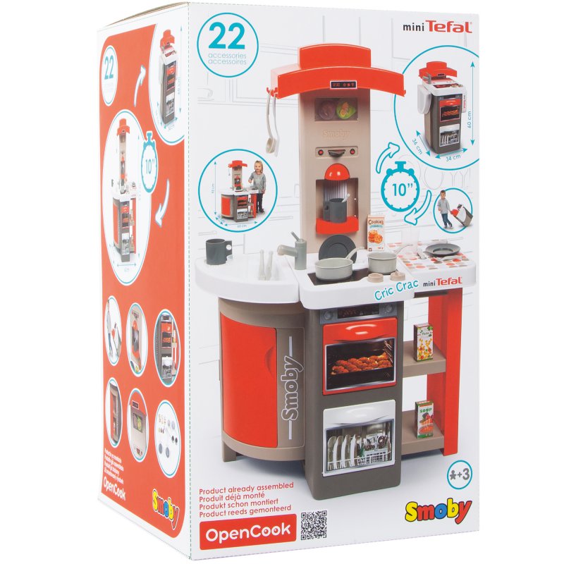 Składana, duża kuchnia Tefal Opencook to propozycja ciekawej i wciągającej zabawy dla dzieci, które chętnie naśladują zajęcia dorosłych i w bezpieczny sposób mogą bawić się w małych kucharzy.