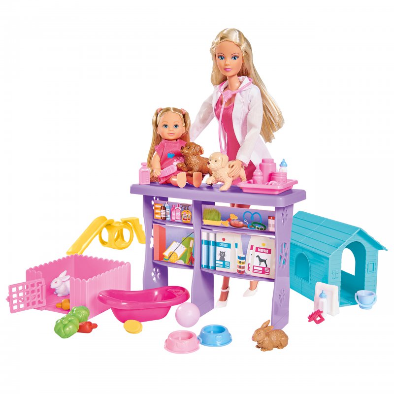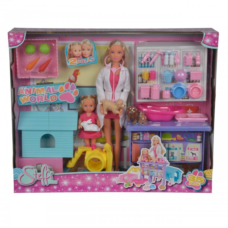 SIMBA Zestaw Lalka Steffi Weterynarz + EVI 35 Elementów
