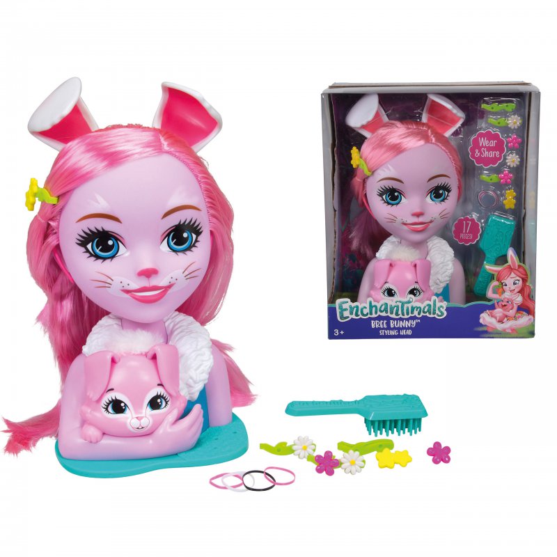 Głowa do stylizacji Lalka Bree Bunny to wspaniała propozycja dla dziewczynek, które uwielbiają zabawę w stylizację i wymyślanie najróżniejszych fryzur. Teraz możesz bawić się w salon fryzjerki, ze swoją ulubioną bohaterką z filmu animowanego Enchantimals™. Dołączone akcesoria można wykorzystać ozdabiając fryzurę lalki, jak również swoje włosy. W zestawie znajduje się wyjątkowa opaska, królicze uszy, z pewnością każda dziewczynka przez chwilę będzie chciała poczuć się się jak swoja bohaterka Bree Bunny i założy ją na swoją głowę.