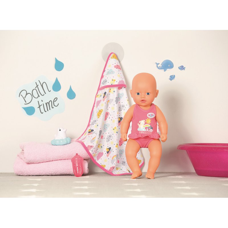 Kolejna świetna pozycja od Baby Born mała laleczka kąpielowa 30cm. Ubrana w różowe body na wyposażeniu butelka kaczuszka i ręczniczek.