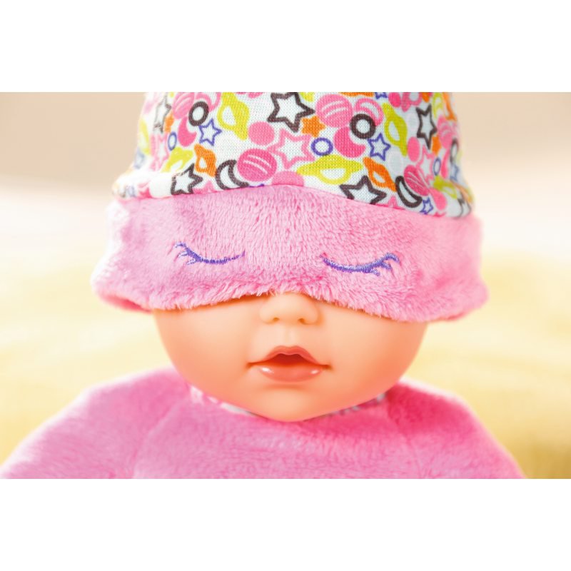 Laleczka ma różowe śpioszki i kolorową czapeczkę. W brzuszku lali umieszczono grzechotkę, która po potrząśnięciu wydaje delikatny dźwięk. Ten element na pewno zaciekawi maluszki. Baby born to idealna przyjaciółka do przytulania, zabawy i zasypiania.