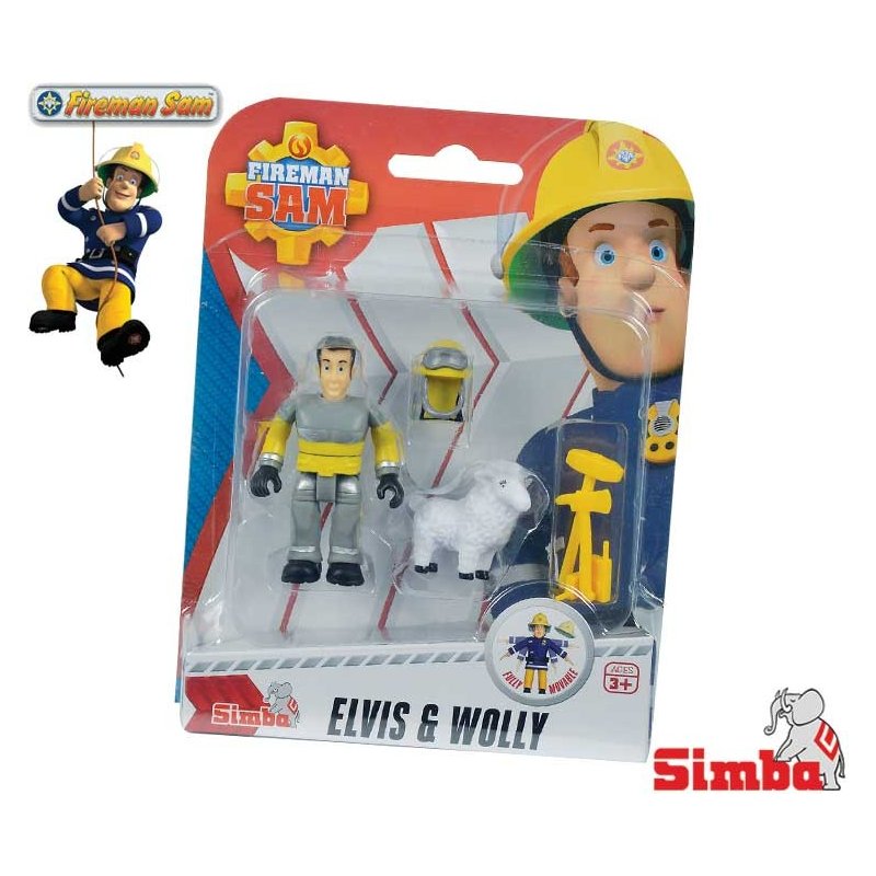 Zestaw figurek Elvis i owieczka Wolly firmy Simba, powstał na podstawie animowanego serialu dla dzieci pod tytułem Strażak Sam.