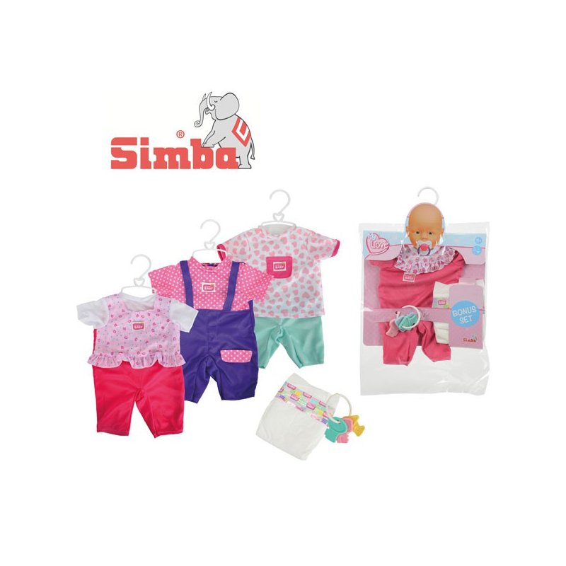 Simba Ubranko dla lalki New Born Baby w serduszka + pieluszka grzechotka Gratis