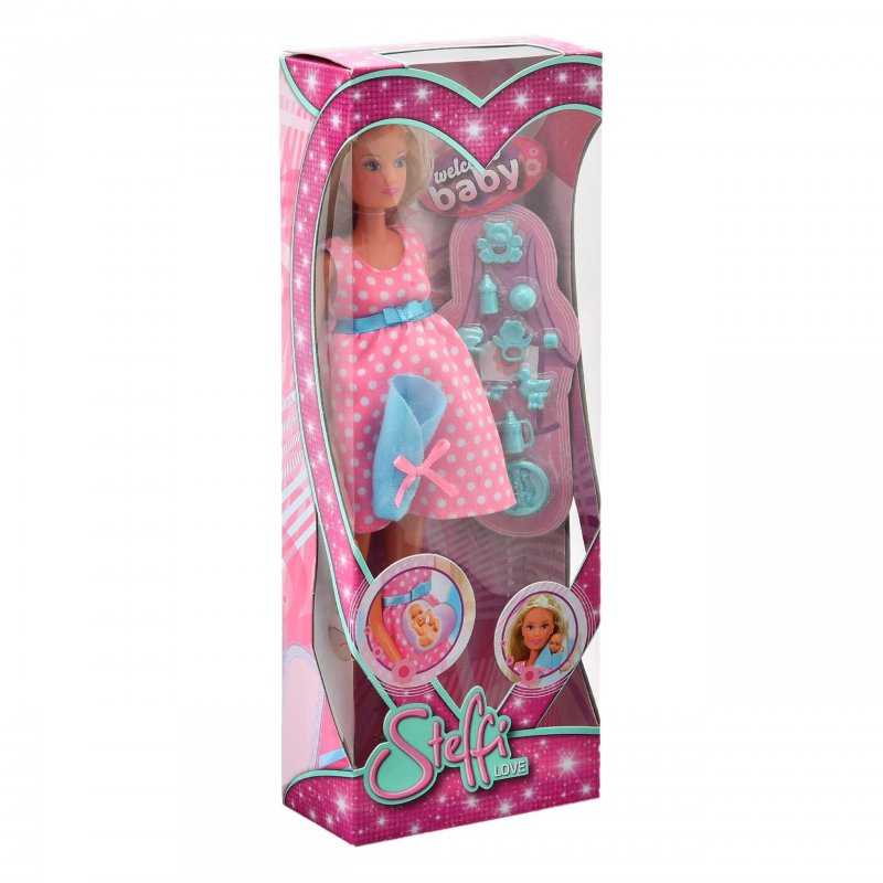 Zapraszamy w magiczny świat Steffi, jak zawsze pełen kolorowych strojów oraz przesympatycznych gadżetów. Wasze pociechy zaczną tworzyć nieskończoną ilość opowiadań o Steffi i jej przygodach, co zachęci do wyobrażania i udoskonalania scenek z życia małej przyjaciółki. Lalka Steffi w zależności od fantazji bawiącej się dziewczynki, może być w ciąży (bobaska można umieścić w brzuszku) lub być już szczęśliwą mamusią po porodzie. W zestawie znajduje się wiele akcesoriów do opieki nad maluszkiem: