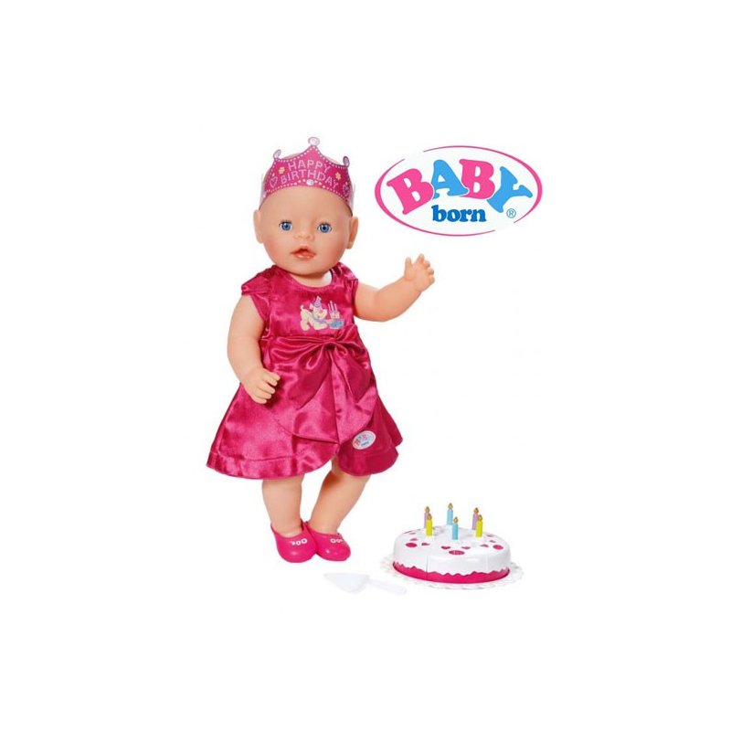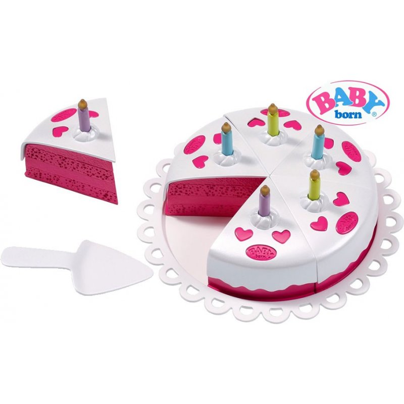 Baby Born to niezwykle elegancka lalka. Ceni sobie najwyższą jakość i styl. Dlatego ubranka z kolekcji Baby Born zachwycają każdego. Baby born obchodzi swoje urodzinki. Czy spełni się jej wielkie marzenie, gdy zdmuchnie świeczki? Piękna, różowa suknia, do tego korona i pantofelki - w takim stroju laleczka będzie wyglądać cudownie. Wyjątkowy Tort Urodzinowy, który posiada świeczki.Torcik możesz podzielić na mniejsze kawałki, by każdy na przyjęciu urodzinowym mógł skosztować ciasta.W zestawie nie występuje lalka.
