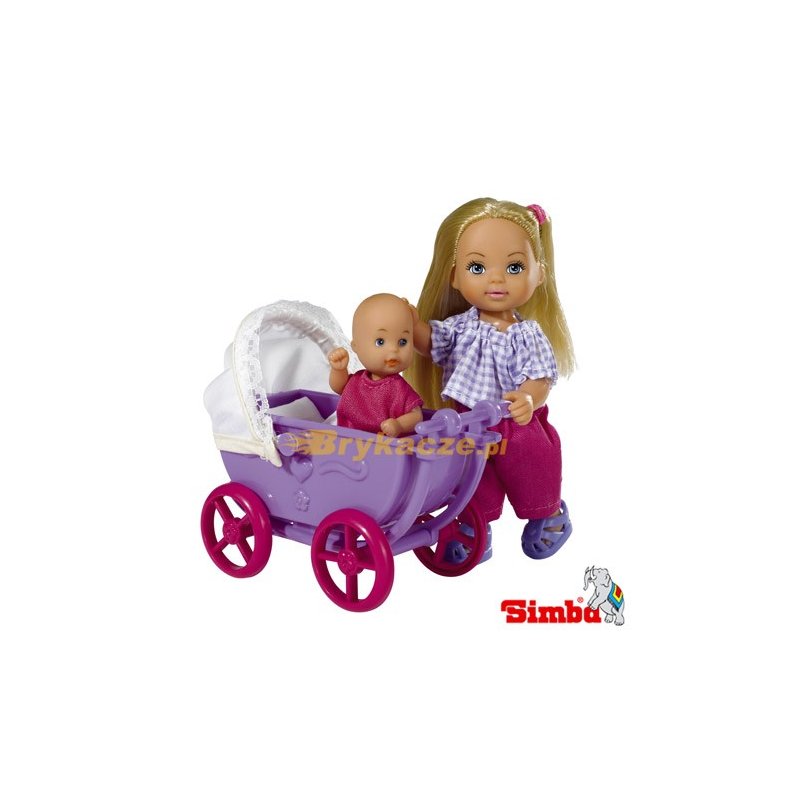 Evi jest młodszą siostrą Steffi. W piękny, jesienny poranek laleczka ze swoim maleństwem wyrusza na uroczy spacer, wśród spadających kolorowych liści. W skład zestawu wchodzi bobas, wózek oraz wiele akcesoriów do opieki nad maleństwem, takie jak: buteleczka, grzechotki czy smoczek. Dzięki nim spacer będzie niezwykłą przyjemnością. Zabawka występuje w dwóch wersjach kolorystycznych: Evi z różowym lub granatowym wózkiem.