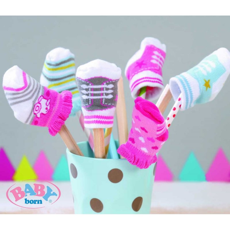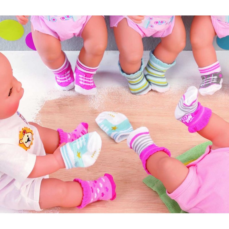 Skarpetki dla Baby Born to niezbędny dodatek do stroju i nie powinno go zabraknąć w garderobie Twojej laleczki. Zestaw zawiera 2 pary.
