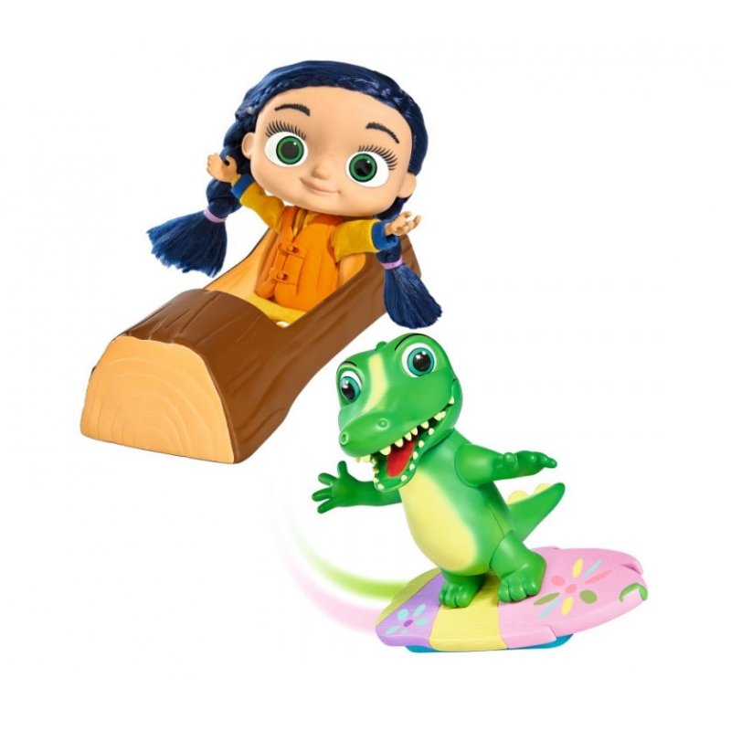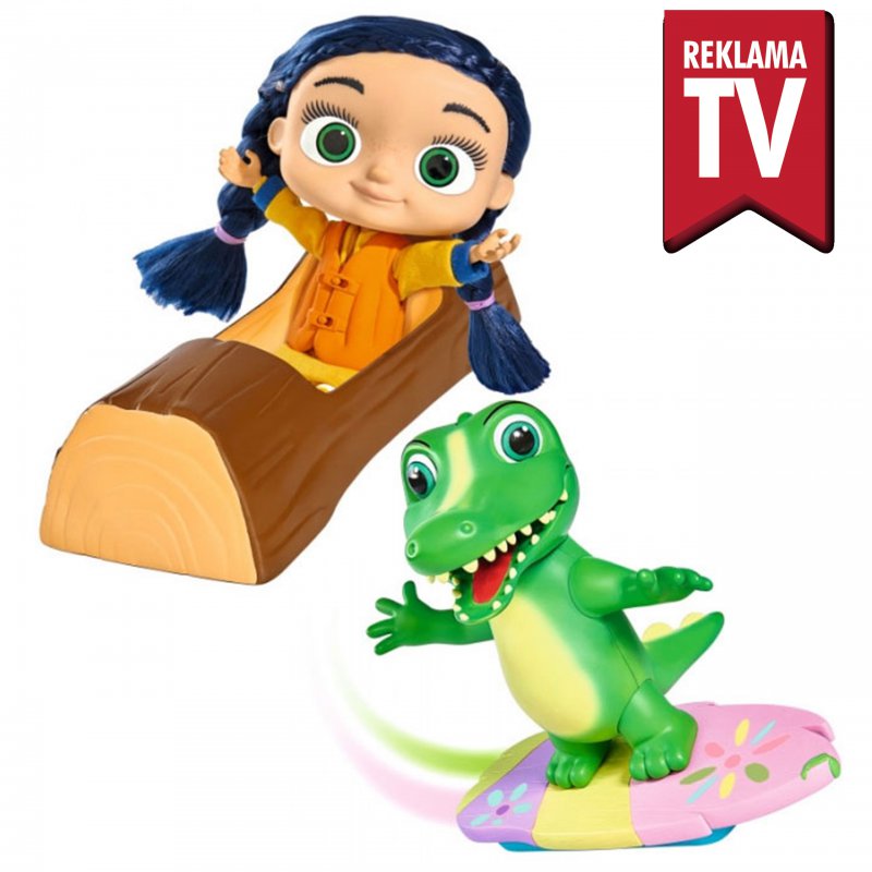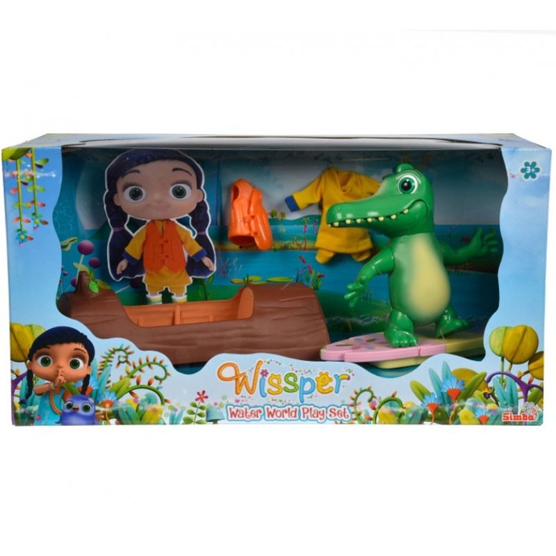 Z krokodylem Kev czekają Cię szalone rajdy po krętych rzekach i szerokich jeziorach.Przebierz lalkę w specjalny strój i nałóż kapok.Teraz posadź lalkę Wissper w jej kanoe z pnia drzewa i pokonujcie wysokie fale.Deska surfingowa Kev’a ma napęd sprężynowy.Naciśnij przycisk na głowie Kev’a, a on radośnie otworzy pyszczek. Zestaw nie zawiera lalki.