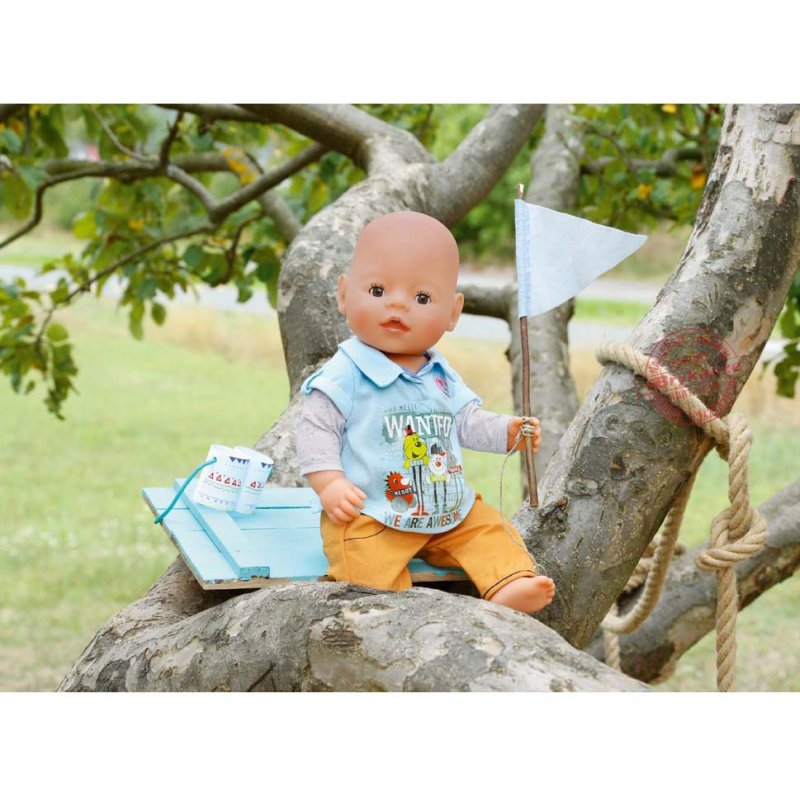 Braciszek baby Born także chce wyróżnić sie strojem. Zestaw składa się z bluzeczki z kołnierzykiem, wywiniętymi mankiecikami oraz spodni. Zestaw przeznaczony jest dla lalki 43 cm.