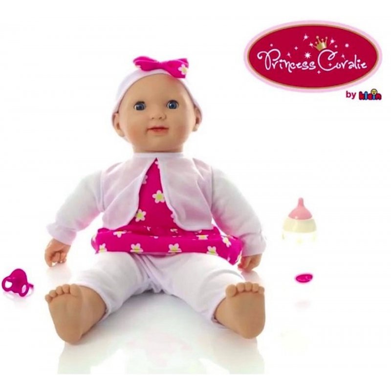 Seria Princess Coralie, to seria produktów stworzonych z myślą o dziewczynkach, które mogą opiekować się swoją lalką, jakby były prawdziwymi mamami. Interaktywna lalka 43 cm posiada 8 podstawowych funkcji dźwiękowych oraz ponad 20 prawdziwych odgłosów dziecka dodatkowo lalka zamyka i otwiera oczka, dzięki czemu doskonale imituje żywego bobasa. Mała mama może opiekować się swoją lalką, rozwijając przy tym swoją wrażliwość emocjonalną i empatię.