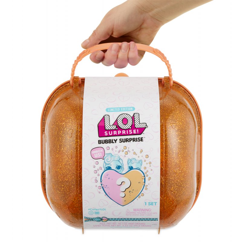 Czy jesteście gotowe na niezwykłą, bąbelkową niespodziankę? A może nawet całe mnóstwo niespodzianek?! Z L.O.L Surprise zabawa zaczyna się już podczas rozpakowywania! Duże, brokatowe opakowanie w kształcie walizeczki z uchwytem, skrywa w sobie mnóstwo niespodzianek z edycji specjalnej! Włóż wielkie, pastelowe, musującą serce do miski z wodą i obserwuj, jak wyłania się otwierany pojemnik także w kształcie serduszka z uroczymi niespodziankami - specjalną edycją Laleczki LOL! Laleczka posiada specjalne umiejętności, które dziewczynki muszą wypróbować - zmieniają kolor w kontakcie z zimną wodą. Ponadto zabawę z tym fantastycznym zestawem wzbogacą kule z 6 niespodziankami - ubrankami i akcesoriami do zabawy. Uwaga! Zestaw Bąbelkowa Niespodzianka zawiera także ślicznego pupilka z funkcją zmiany koloru w wodzie! Opakowanie zewnętrzne to doskonały pojemnik do przechowywania niespodzianek, który może pełnić również funkcję miski do zabawy z wodą albo torebki.