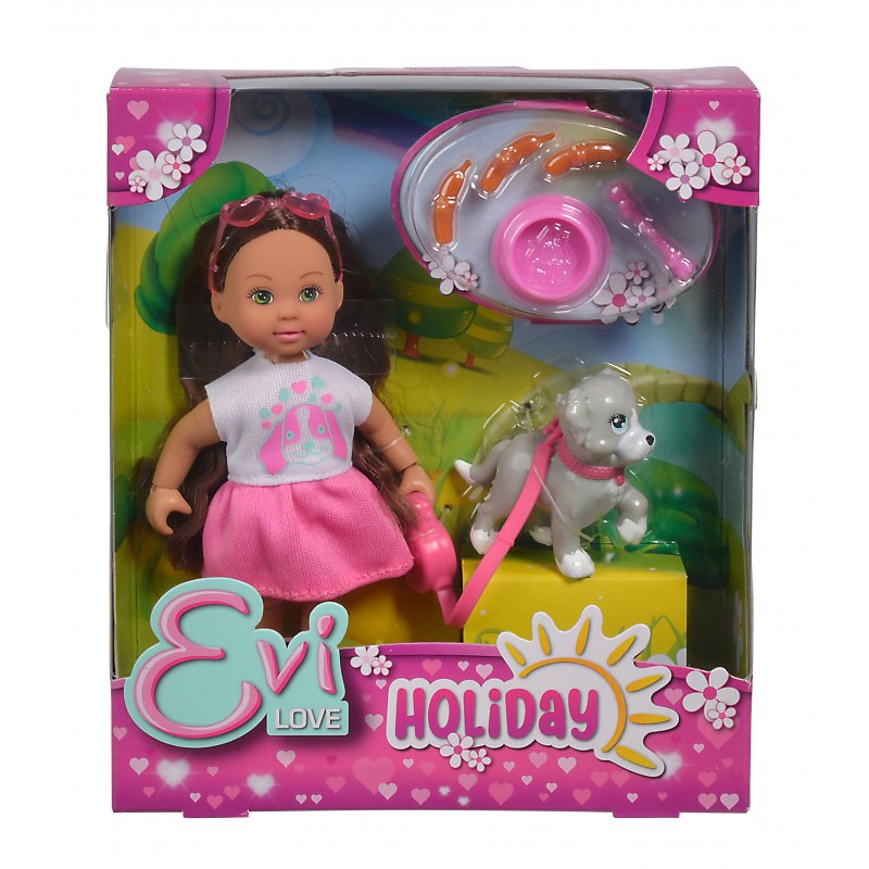 Evi jest młodszą siostrą Steffi. W piękny, jesienny poranek laleczka ze swoim maleństwem wyrusza na uroczy spacer, wśród spadających kolorowych liści. W skład zestawu wchodzi bobas, wózek oraz wiele akcesoriów do opieki nad maleństwem, takie jak: buteleczka, grzechotki czy smoczek.