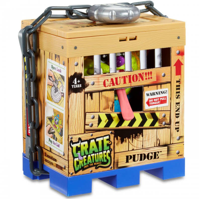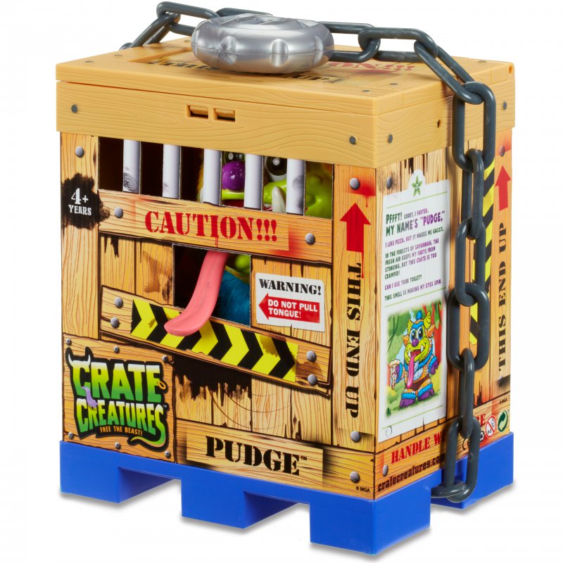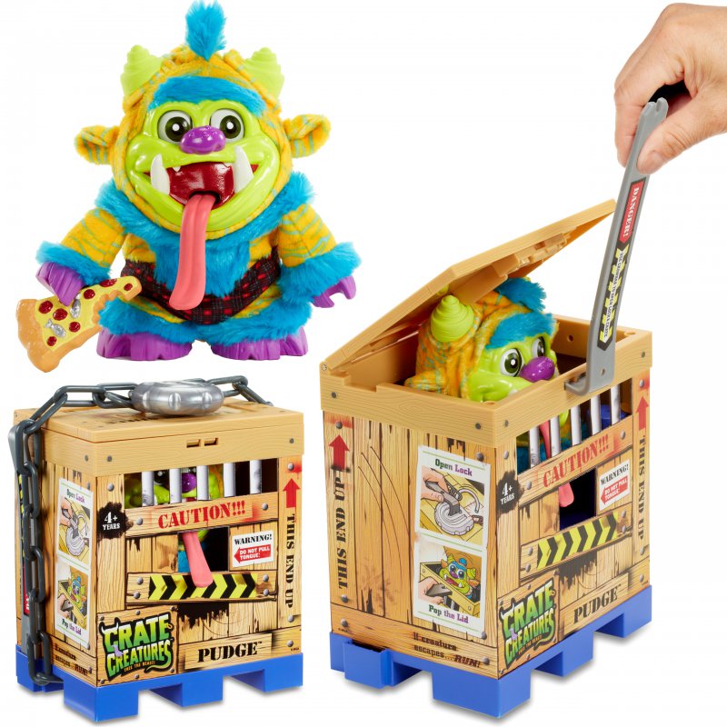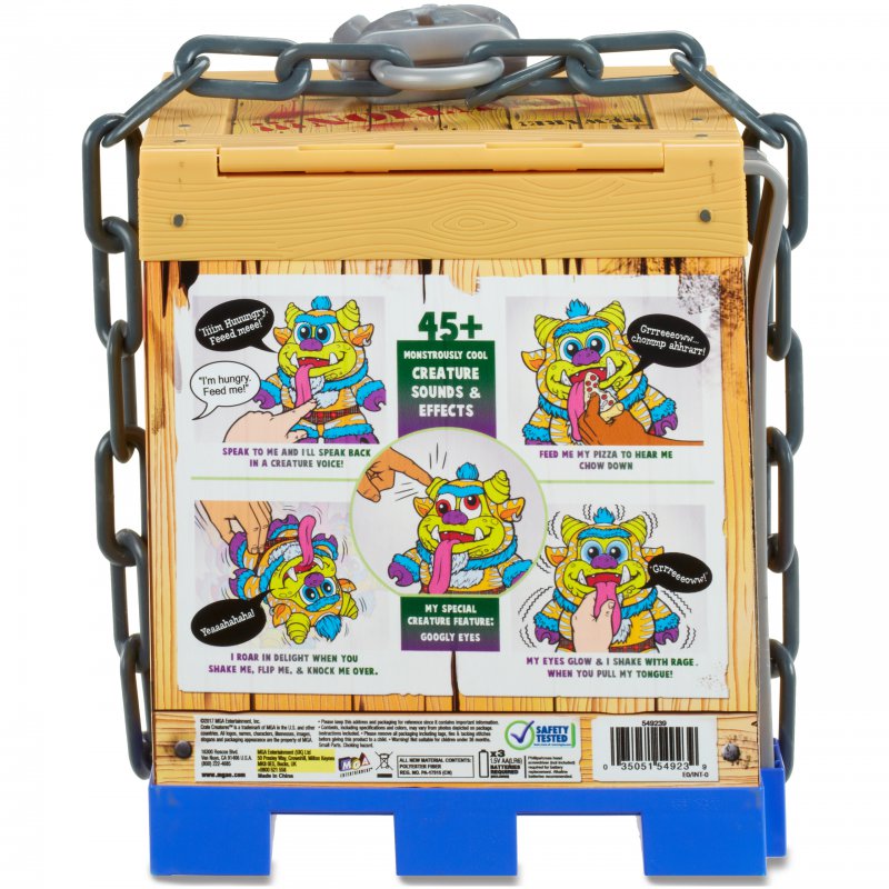 Włam się do skrzyni, aby rozpakować Twojego nowego przyjaciela: Potwora - Niespodziankę. Pociągnij za język aby bestia zaczęła wydawać monstrualnie zabawne dźwięki. Nagrywaj i powtarzaj zwroty ze swoimi własnymi Crate Creatures.