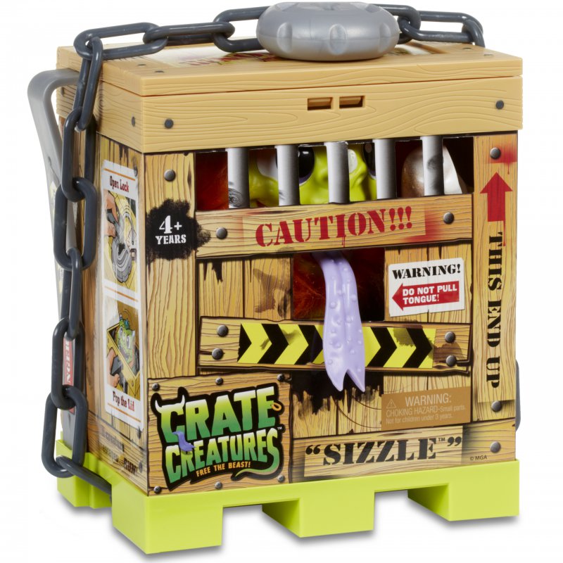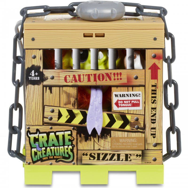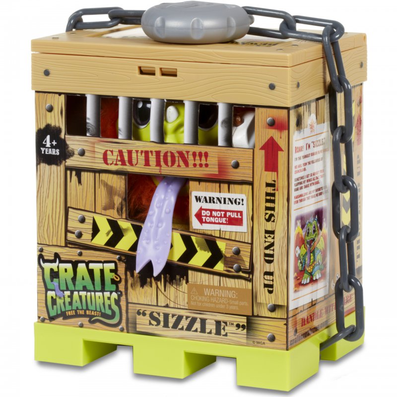Włam się do skrzyni, aby rozpakować Twojego nowego przyjaciela: Potwora - Niespodziankę. Pociągnij za język aby bestia zaczęła wydawać monstrualnie zabawne dźwięki. Nagrywaj i powtarzaj zwroty ze swoimi własnymi Crate Creatures.