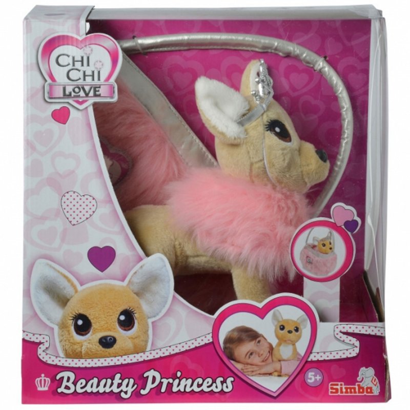Zestaw zawiera pieska Chi Chi Love oraz różową torebkę w której można nosić pieska lub ulubione zabawki. Piesek ubrany jest w różowe, futrzane ubranko. Do tego posiada koronę księżniczki. Torebka wykonana jest z takiego samego tworzywa, dzięki czemu wraz z pieskiem tworzy uroczy zestaw.