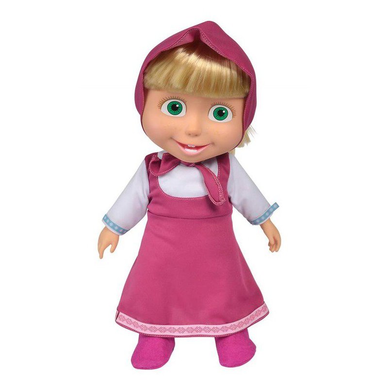 Idealnie odwzorowana lalka Maszy o wysokości 40cm w swoim tradycyjnym ubraniu. Bohaterka jest w ubrana w charakterystyczny dla siebie strój.