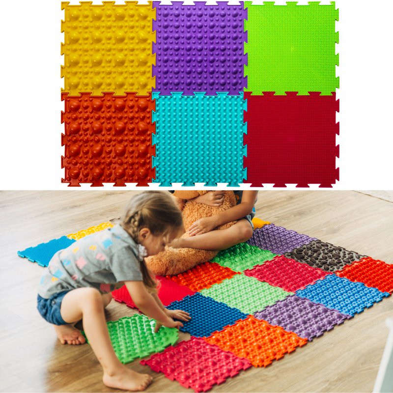 Wiele rodzajów tekstury i różna typy sztywności dywaników pozwalają na utworzenie różnych możliwości połączeń tak, aby osiągnąć rozmaite efekty masażu, a także są dywaniki specjalnie zaprojektowane dla dzieci z koślawym/szpotawym ustawieniem stóp z płaskostopiem.