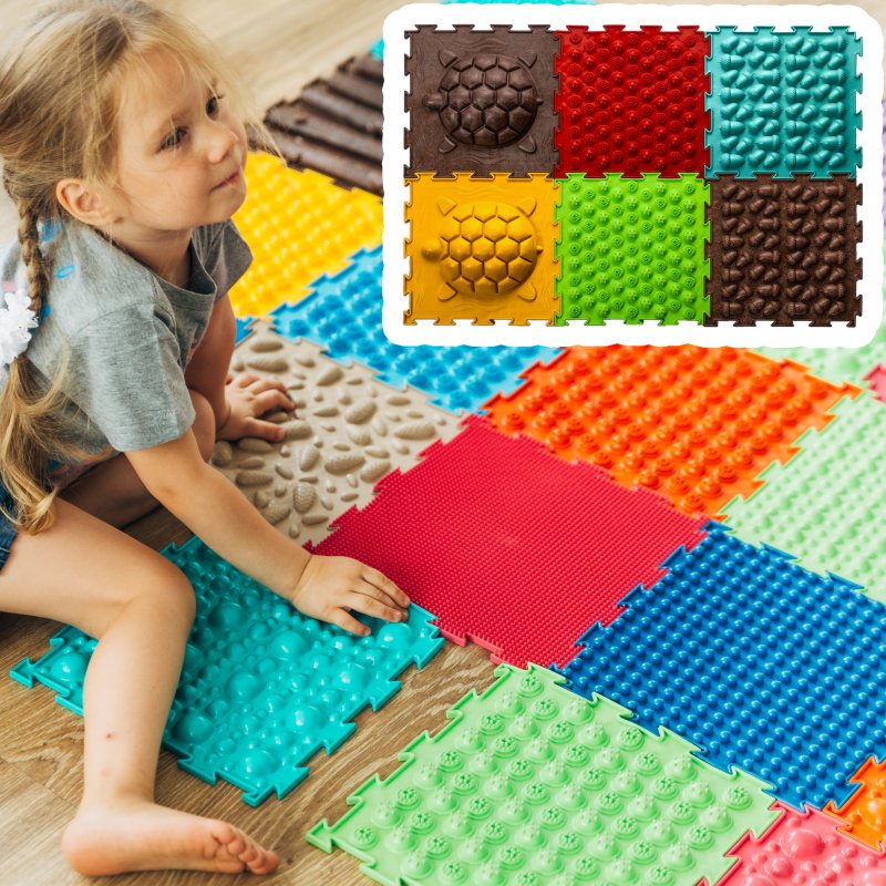 Wiele rodzajów tekstury i różna typy sztywności dywaników pozwalają na utworzenie różnych możliwości połączeń tak, aby osiągnąć rozmaite efekty masażu, a także są dywaniki specjalnie zaprojektowane dla dzieci z koślawym/szpotawym ustawieniem stóp z płaskostopiem.