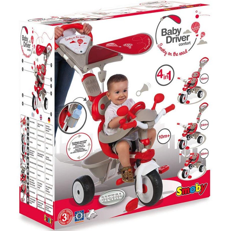 Baby Driver Comfort to rozbudowany i doskonale wyposażony pierwszy rowerek, który "rośnie" razem z dzieckiem, dopasowując się do potrzeb maluchów na każdym etapie ich rozwoju. Konstrukcja trójkołowca pozwala na korzystanie z pojazdu dzieciom od 10 do 36 miesiąca życia.