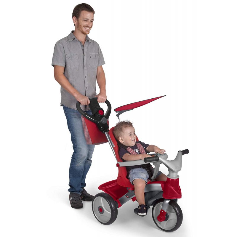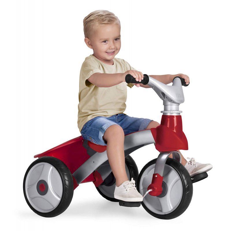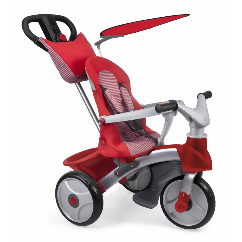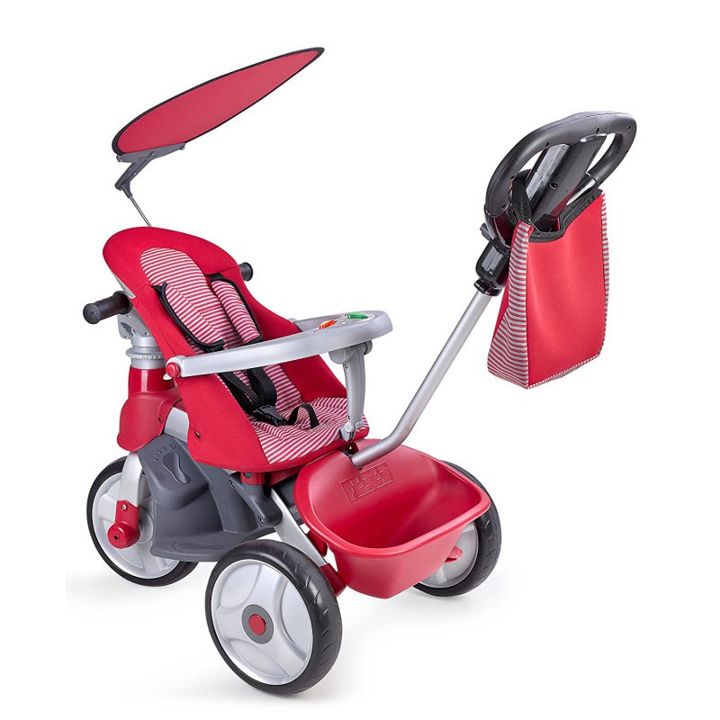 Komfortowy rowerek trójkołowy od hiszpańskiego producenta zabawek firmy Feber. Wersja de luxe zawiera: