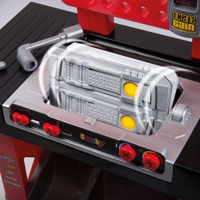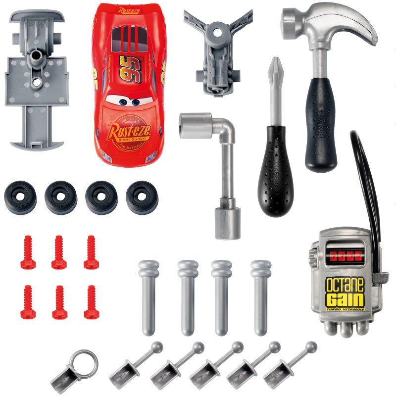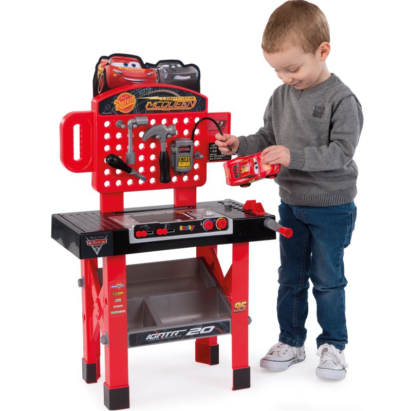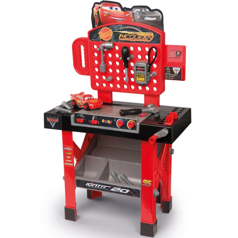 Smoby CARS to seria licencyjnych narzędzi i warsztatów stworzona z myślą o dzieciach uwielbiających kreatywną i konstruktywną zabawę w majsterkowanie. Rozpoznawalne auto z bajki CARS 3 przeniesione na najwyższej jakości zabawki, pozwoli dzieciom poczuć emocje związane z prawdziwą pracą w warsztacie.