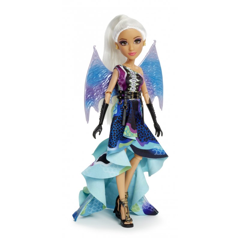 Lalka wielobarwną sukienkę, oryginalny pasek, namalowane długie rękawiczki, szpilki, kolczyki. Całości dopełnia jasnofioletowa, ażurowa maska na oczy i skrzydła. Obok lalki w zestawie znajduje się zestaw do wyrobu lakieru do paznokci.