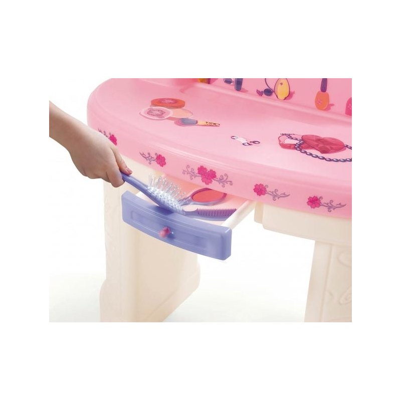 Kącik zabaw Step 2, toaletka z masywnego tworzywa sztucznego o podwójnych ściankach wypełnionych w środku powietrzem, dzięki czemu odporna na pęknięcia i uszkodzenia.